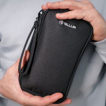 Păstrați-vă accesoriile tehnologice organizate și ușor accesibile cu această geantă de călătorie elegantă pentru organizare.