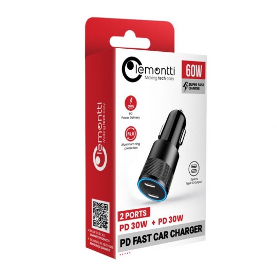 Incarcatorul Lemontti Auto Fast Charge Type-C PD, 60W, ofera suficienta energie pentru a incarca rapid doua dispozitive mobile simultan datorita celor doua porturi disponibile. Aspectul clasic se potriveste perfect cu orice tip de masina fara sa afecteze design-ul acesteia, iar calitatea manoperei indica faptul ca este un dispozitiv solid si durabil.