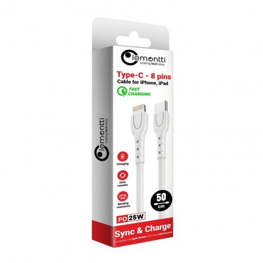 Cablul Type-C la Lightning de la Lemontti are o lungime de 0.5m este din material de calitate si durabil fiind acoperit cu un material cauciucat fin si placut la atingere.