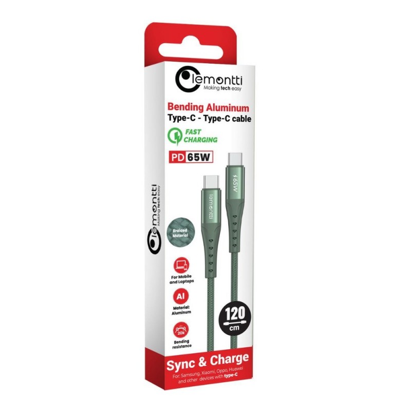 Cablu Bending Aluminum Type-C la Type-C Fast Charge, se poate utiliza atat pentru incarcare cat si pentru sincronizare date impreuna cu dispozitivele cu conector Type-C. Este realizat din impletitura de naylon pentru o rezistenta sporita si pentru a nu permite incurcarea sau ruperea.