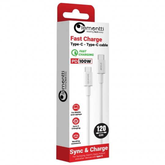 Cablul Type-C la Type-C PD, 100W de la Lemontti, este un cablu calitativ care va permite sa incarcati rapid si eficient diferite dispozitive cu un port Type-C, dar si pentru sincronizarea datelor (480 Mbps), fie ca este vorba de laptopuri, tablete sau smartphone-uri, acest cablu este solutia potrivita atunci cand aveti nevoie de un produs care sa indeplineasca mai multe functii.