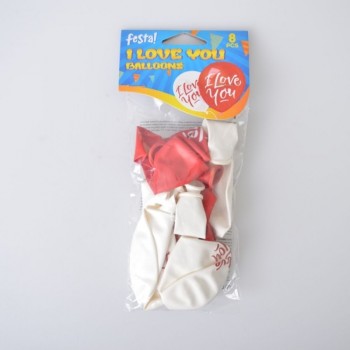 Mix de baloane in 2 culori (alb si rosu) cu model desenat.