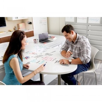 Folia White Board Post-it este o folie autoadeziva lucioasa care se aplica direct pe suprafata selectata. Textele sau desenele, create cu ajutorul markerelor pentru Whiteboard, pot fi indepartate cu usurinta. Nu numai ca este mai usoara fata de tablele de proiectie traditionale, dar salveza spatiu integrandu-se perfect din punct de vedere arhitectural. imbunatateste creativitatea si productivitatea intalnirilor prin transformarea unui perete intreg in spatiu de scris. Folia 3M Whiteboard Post-it poate fi aplicata in sali de conferinte, birouri, scoli, gradinite, etc. - transforma peretii in suprafete de scris reutilizabile - curatarea este simpla, folosind burete uscat sau carpa - pentru scriere poti folosi marker pentru whiteboard de orice culoare (dar NU marker permanent!) - se monteaza simplu si in siguranta (fara galagie, fara praf, fara gauri in perete si riscuri de accidentare) - se poate folosi de sine statatoare sau poate fi aplicata pe o tabla alba deteriorata, redandu-i utilitatea.