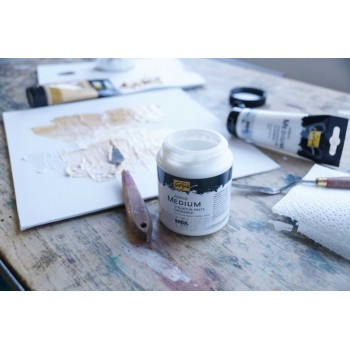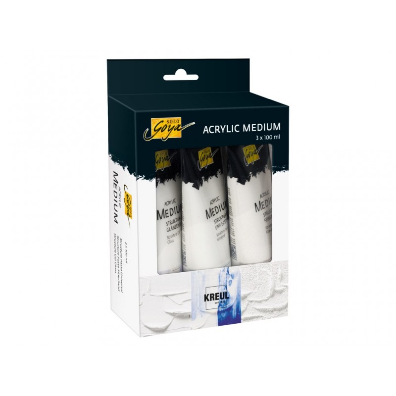 Cu setul de 3 piese Solo Goya Acrylic Medium, puteți crea efecte speciale pe pânze de pictură, cu o gamă selectată de paste de structură și geluri de structură. Cu Solo Goya Acrylic Medium, pot fi create efecte tridimensionale, iar compozițiile de imagini pe pânză primesc o profunzime atrăgătoare a imaginii și o mare expresivitate. Astfel, lucrările nu vor dezvălui doar o lume vizuală, ci și una tactilă, o experiență creată pe pânză atunci când vopselele acrilice, pastele structurale și gelurile se întâlnesc. Pastele și gelurile de structură sunt potrivite pentru dimensionarea suprafețelor din plastic, pot fi utilizate ca agenți de amorsare pentru a obține diverse texturi de fundal, sunt potrivite pentru diferite efecte volumice și ca adeziv pentru colaje. Toate pastele și gelurile sunt pe bază de apă și sunt ideale pentru modele cu cuțitul de paletă și aplicații bogate în textură, cu pensula.