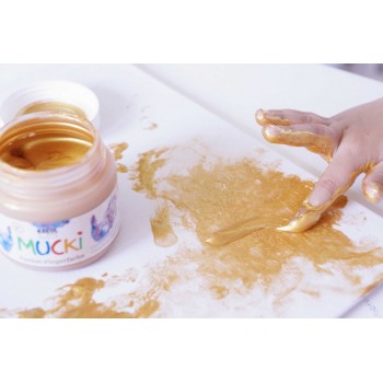 Pietre prețioase, sclipici și vopsele cu sclipici – parcă niciodată nu sunt suficiente. Fără accesoriile lor fantastice, eroii și eroinele copiilor sunt practic de neimaginat: unicornul trebuie să strălucească, sirena trebuie să strălucească, dragonul trebuie strălucească, iar armura cavalerului trebuie, evident, să strălucească. Vopselele Mucki Finger Paint Gleaming fac posibile efecte metalice strălucitoare, astfel încât cei mici să simtă și să descopere și mai mult. O bucată de carton se transformă într-un scut strălucitor de cavaler, iar o cutie pentru ouă devine o cutie de bijuterii strălucitoare. Setul conține patru vopsele selectate pentru a vrăji micile prințese și vânătorii curajoși de dragoni, dar și pe mamele lor. Nuanțele în sine spun povești incitante despre zâne, comori de aur și dragoni de argint.