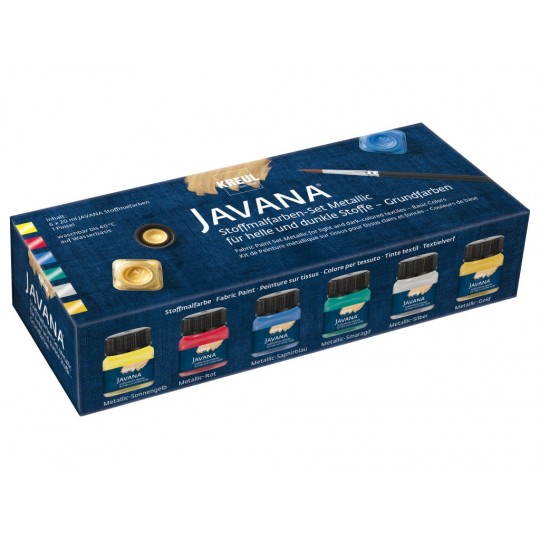 Vopselele metalice cremoase pentru materiale textile deschise și închise la culoare sunt ideale pentru imprimare, ștanțare și șabloane datorită caracterului lor păstos. Vopselele sunt foarte opace, iar efectul lor metalic-sclipitor rămâne pe țesătură, nu curg sub șablon și transferă detaliile filigranate ale ștampilelor. Cu toții suntem inspirați de luminozitatea vopselei cremoase Kreul Javana Fabric Paint, pentru textile deschise și închise la culoare, și putem imprima ornamente cu reflexii metalice, motive spațiale și geometrice pe țesături precum bumbac, in sau jeans. După fixare, vopselele sunt rezistente la lumină și se pot spăla la temperatura maximă de 40°C.