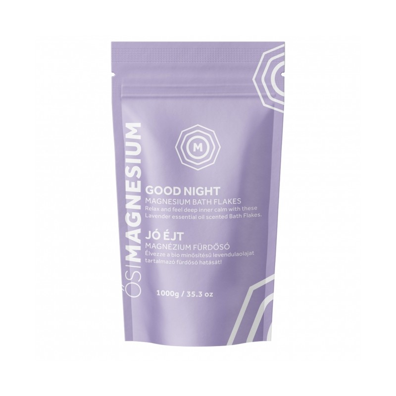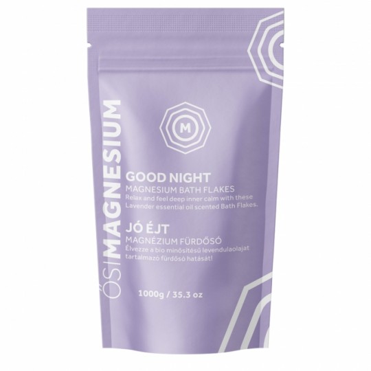 Fulgii de magneziu sunt o modalitate usoara si eficienta de a creste aportul zilnic de magneziu in mod natural. Fulgii de baie Good Night combina clorura de magneziu cu ulei esential de lavanda calmant. Fiecare celula din organism necesita magneziu pentru a functiona corect si acest mineral este esential pentru bunastarea generala. Fulgii de clorura de magneziu sunt extrasi din marea Zechstein, vechi de 250 de milioane de ani. Este protejat de orice forma de impact asupra mediului, ceea ce il face cea mai pura sursa de clorura de magneziu conservata in starea sa energetica autentica. Fulgii de clorura de magneziu sunt mai usor absorbiti decat sulfatul de magneziu (sarurile epsom) si sunt o modalitate eficienta si relaxanta de a umple nivelul de magneziu al corpului. Aceasta alternativa naturala la suplimentele orale sustine nivelul de magneziu al organismului si contribuie la functionarea normala a muschilor, reduce oboseala si oboseala si, de asemenea, ajuta la mentinerea functiilor nervoase si psihologice normale, printre multe dintre proprietatile sale benefice.