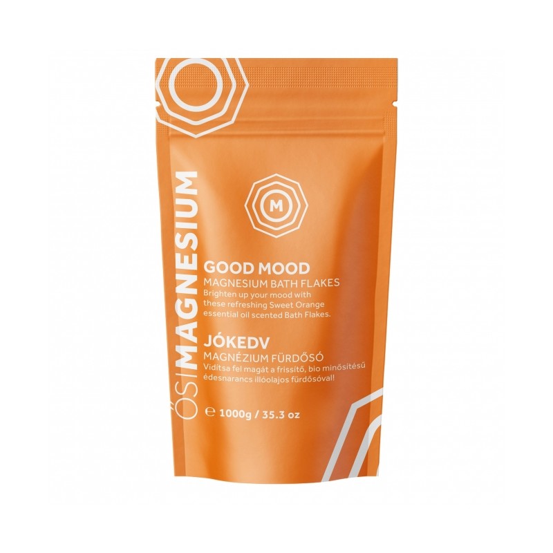 Fulgii de magneziu sunt o modalitate usoara si eficienta de a creste aportul zilnic de magneziu in mod natural. Fulgii de baie Good Mood combina clorura de magneziu ultra-pura cu uleiul esential de mandarina natural energizant. Fiecare celula din organism necesita magneziu pentru a functiona corect si acest mineral este esential pentru bunastarea generala. Fulgii de clorura de magneziu sunt extrasi din marea Zechstein, vechi de 250 de milioane de ani. Este protejat de orice forma de impact asupra mediului, ceea ce il face cea mai pura sursa de clorura de magneziu conservata in starea sa energetica autentica. Fulgii de clorura de magneziu sunt mai usor absorbiti decat sulfatul de magneziu (sarurile epsom) si sunt o modalitate eficienta si relaxanta de a umple nivelul de magneziu al corpului. Aceasta alternativa naturala la suplimentele orale sustine nivelul de magneziu al organismului si contribuie la functionarea normala a muschilor, reduce oboseala si oboseala si, de asemenea, ajuta la mentinerea functiilor nervoase si psihologice normale, printre multe dintre proprietatile sale benefice.