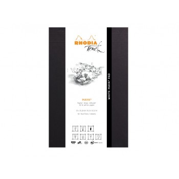 Blocnotesul capsat Maya® Rhodia Touch este un instrument de lucru pentru tehnici grafice ce necesită acuratețe și precizie, în lucrări ce implică utilizarea creionului, instrumentelor cu vârf din fetru, linere de precizie, peniță. Hârtie Maya® de 120 grame, uni, cu înalt grad de alb, ce suportă tehnici de grafică ce presupun straturi multiple de cerneală, corecții repetate, fără decopertarea suprafeței. Coperți din carton Maya® de calitate superioara, 270 grame , negru. Logo Rhodia Touch embosat pe coperta fata.
