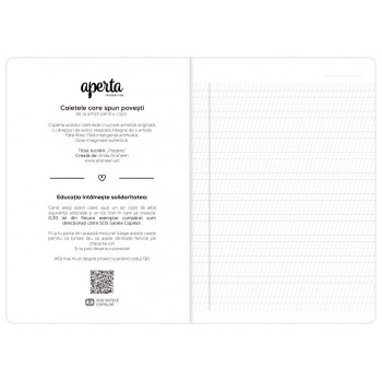 Când alegi acest caiet, ajuți un alt copil să aibă siguranță, educație și un loc bun în care să crească – 0,30 lei din fiecare exemplar cumpărat sunt direcționați către SOS Satele Copiilor.