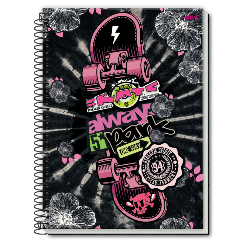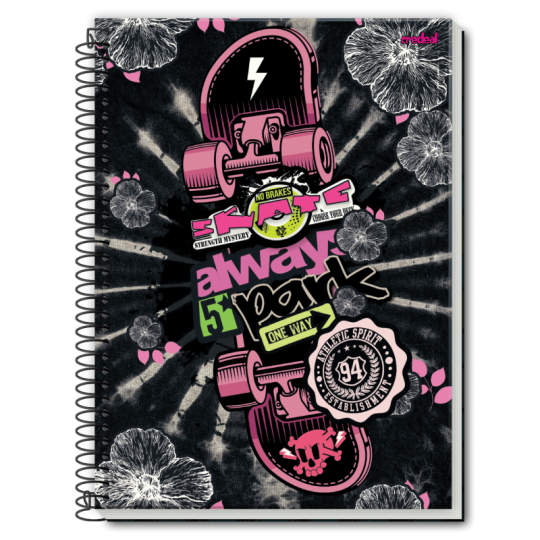 Caiet cu spira metalica, dimensiuni: 20 x 27,5 cm; hartie interior: 56 g/m2; hartie coperta interioara: 115 g/m2; coperta cartonata: 1,3 mm; micro perforatii pentru rupere usoara.