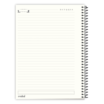 Caiet cu spira metalica, dimensiuni: 20 x 27,5 cm; hartie interior: 56 g/m2; hartie coperta interioara: 115 g/m2; coperta cartonata: 1,3 mm; micro perforatii pentru rupere usoara.