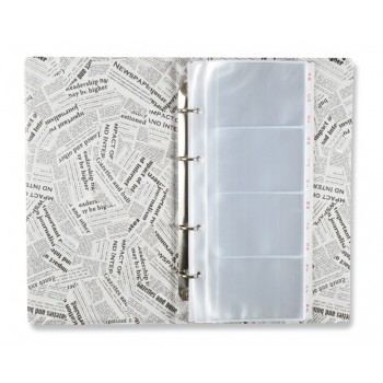 Agenda carti de vizita realizata din material fara ftalati in designul NEWSPAPERS cu file de index alfabetic de hartie, 10 coli, pentru pastrarea / arhivarea a 80 de carti de vizita unilaterale, cu o coperta moale si cu autocolantul KOH-I-NOOR HARDTMUTH. Foliile din interior au cate 4 randuri si sunt fabricate din folie transparenta PP care impiedica imprimarea textului pe aceasta. Cu ajutorul mecanismului tip caiet mecanic cu 4 inele, foliile si fila index pot fi scoase si reintroduse in agenda port-vizit. Daca este necesar, foliile pot fi suplimentate.