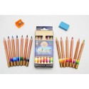 Setul contine 12 creioane colorate+blender+ascutitoare+radiera.
