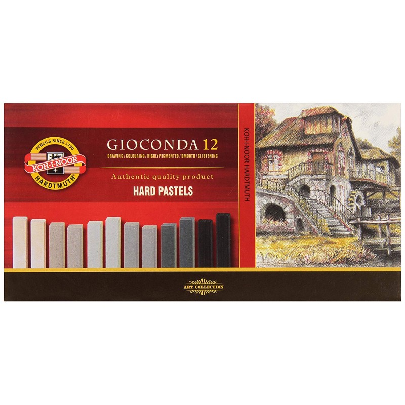 Gioconda 8100 Hard Pastels - pastelul dur reprezinta un produs traditional al KOH-I-NOOR Hardtmuth. Produsul este obtinut prin mixarea atenta a componentelor bogate de calitate superioara: pigmentii perfect dispersati, atent selectati, argila alba cu granulatie fina si propria reteta de liant. Componentele naturale asigura lucrul fluid si confortabil pe hartie sau alt suport adecvat. Terebentina poate fi folosita pentru amestecarea culorilor si obtinerea de noi nuante. Forma patrata ofera posibilitatea de a acoperi zone mari cu tehnica desenului longitudinal si de asemenea colturile ofera posibilitatea definirea contururilor. Nici o componenta utilizata in productie nu contine substante toxice sau daunatoare.