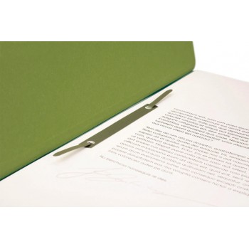 Sistemul de prindere a hârtiei în interior este cu șină cu alonjă metalică. Produsul este certificat Blue Angel și este disponibil într-o gamă diversă de culori.