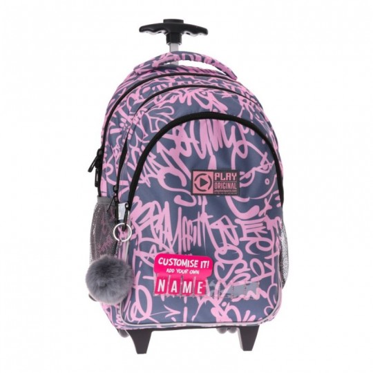 GHIOZDAN SCOALA ANATOMIC PE ROTI GRAPHITI este de sine statator, cu fund dur, curele de umar, roti si maner telescopic. Are un design atractiv.