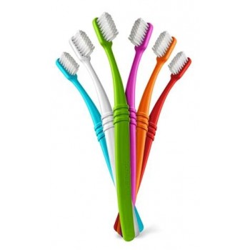 Designul periutei include un maner curbat pentru acele locuri greu accesibile si aranjarea perilor pe 3 nivele, pentru masarea gingiilor.