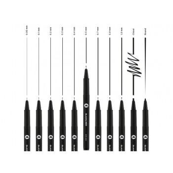 Utilizabil pentru lucrări grafice, schițe, detalii, desen tehnic sau pur și simplu ca instrument de scris, Blackliner, fabricat în Germania, dispune de un tuș permanent, rezistent la apă și la substanțe chimice.