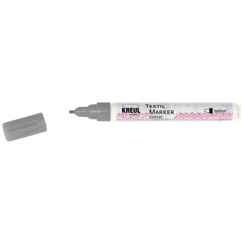 Culorile puternice atrag toate privirile, cu atât mai mult cu cât sunt strălucitoare. Cu markerele pentru textil Glitter de la Kreul, chiar și țesăturile de serie devin pline de farmec. Vopseaua de material semi-opacă, cu efect de sclipici transformă husele de perne și cămășile în vedete ale modei. Vârful ferm al markerului textil face totul: tușe, puncte, pictură la scară largă. Nu punem limite ideilor privind culorile țesăturilor, important este că sunt decorate în culori vii și pline de strălucire!