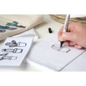 Atunci când creatorii și micii designeri de modă își proiectează propriile modele în modă, markerul textil fin KREUL nu ar trebui să lipsească. Cu vârful robust, poți începe imediat: nu este necesară agitare sau pompare. Afirmații pozitive, nume, flori sau figuri sunt desenate pe textilele deschise la culoare, fiind scrise foarte delicat sau pictate pe suprafețe mari.