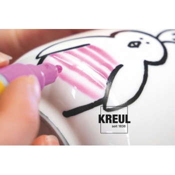 Markere speciale, cu sclipici, pentru scris, desenat și pictat pe cești, pahare, vaze, boluri și multe altele. Markerele cu vopsea Sticlă & Porțelan Kreul Glitter sunt pe bază de apă și ideale pentru modele decorative pe sticlă, porțelan, ceramică, metal, dar și acrilat și oglinzi. Obiectul pictat pe materialul termorezistent se pune in cuptorul care nu a fost încălzit în prealabil, pentru fixare definitivă. Când temperatura de 160 °C a fost atinsă, țineți timp de 30 de minute la cuptor, pentru a obține un exemplar unic, colorat chiar de dvs.!