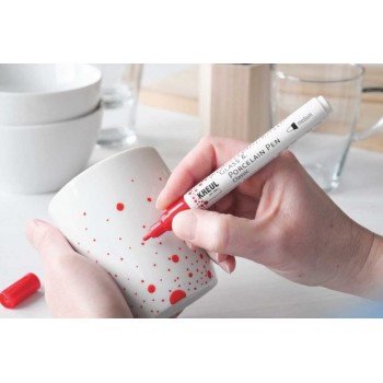 Markere speciale pentru scris, desenat și pictat pe cești, pahare, vaze, boluri și multe altele. Markerele cu vopsea Sticlă & Porțelan sunt pe bază de apă și ideale pentru modele decorative pe sticlă, porțelan, ceramică, metal, dar și acrilat și oglinzi. Obiectul pictat pe materialul termorezistent se pune in cuptorul care nu a fost încălzit în prealabil, pentru fixare definitivă. Când temperatura de 160 °C a fost atinsă, țineți timp de 30 de minute la cuptor, pentru a obține un exemplar unic, colorat chiar de dvs.!