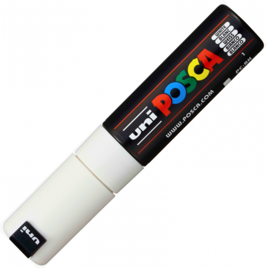 Marker UNI Posca PC-8K, varf tesit, 8.0mm, alb