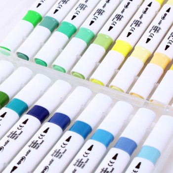- Design cu 2 Capete Multifunctionale: Dotate cu un varf tesit pentru umpleri rapide si un varf rotund flexibil pentru detalii fine, oferind versatilitatea unei pensule intr-un marker.