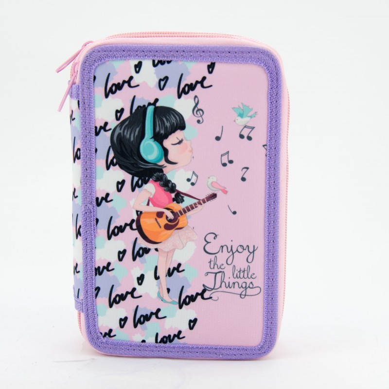 Pentru protectia continutului, exteriorul penarului este buretat si cartonat.