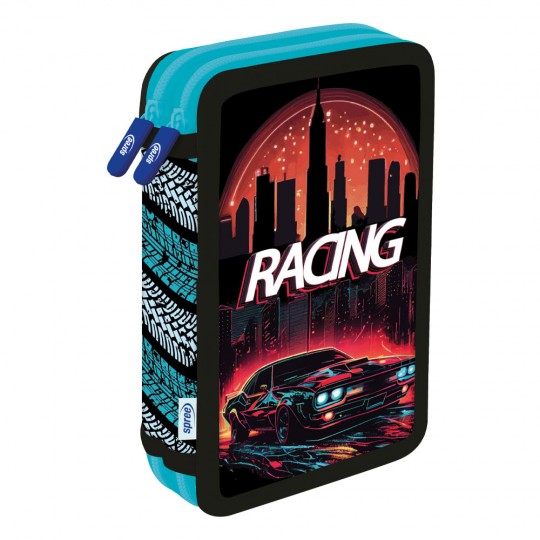 Produsul din imagine este un penar dublu echipat marca Spree, din colectia „Cars”. Acesta este conceput pentru a ajuta la organizarea rechizitelor scolare, avand doua compartimente separate inchise cu fermoare rezistente.
