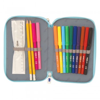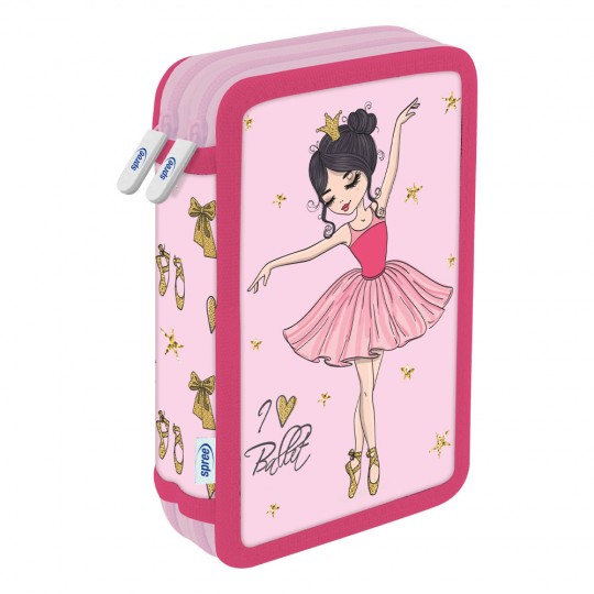 Produsul din imagine este un penar dublu echipat marca Spree, din colectia „BALLET”. Acesta este conceput pentru a ajuta la organizarea rechizitelor scolare, avand doua compartimente separate inchise cu fermoare rezistente.