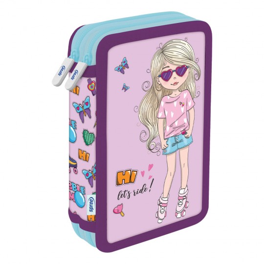 Produsul din imagine este un penar dublu echipat marca Spree, din colectia „LET'S RIDE”. Acesta este conceput pentru a ajuta la organizarea rechizitelor scolare, avand doua compartimente separate inchise cu fermoare rezistente.