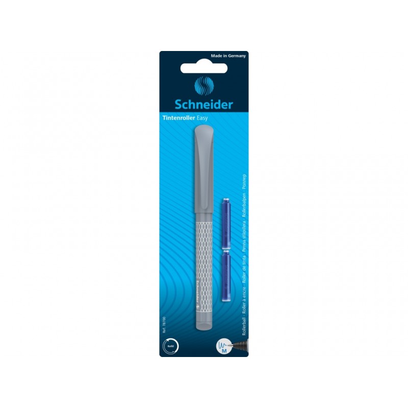 Rollerele Schneider Easy, model 2021, au un design minimalist, geometric, imprimat cu nuanțe bleu sau roz. Scrisul fluent și frumos este garantat de compatibilitatea cu rezervele de cerneală Schneider.